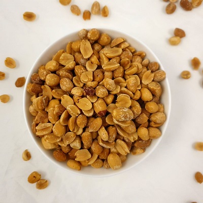 Contine: arahide decojite coapte / prajite (aceste arahide sunt coapte uscat fara a fi utilizat ulei vegetal), sarate